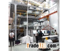A.General introduction for S machineB.Parts of spunbonded nonwoven fabric production line:Recycle extruder---->Main extruder---->Filter---->Metering pump---->Monomer suction device--->Spinning box---->Quenching air chamber---->Stretching device---->Web former---->Calender---->Winder---->SlitterC.Spun-laid process and technical flow chart:Additive(Recycling off-cut fabric)---->Raw material----> Melting---->Filtering---->Measuring ---->Spinning---->Cooling---->Stretching---->Web forming---->Calendering---->Winding----> Cutting---->Final productD.Usage of S nonwoven fabric: (1)Medical and health